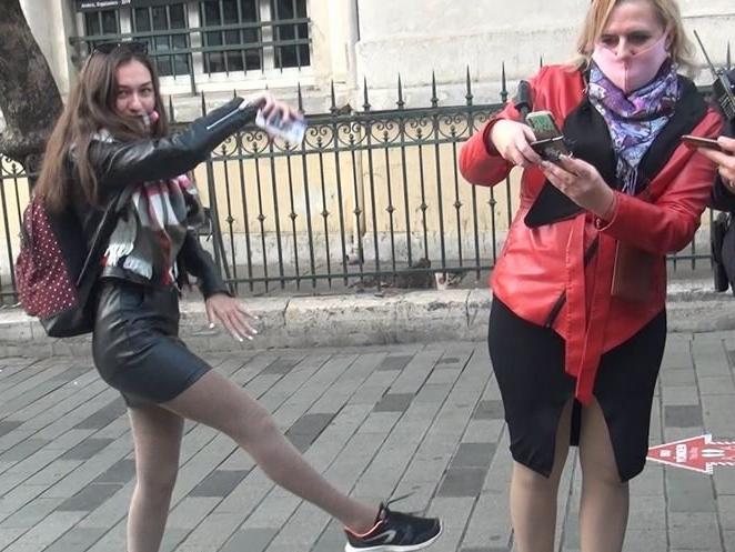 Turist kadınlar cadde üzerindeki mobil polis noktasına alınarak cezai işlem uygulandı. O esnada turistlerden biri kendilerini görüntüleyen kameraya dönerek önce çeşitli figürler sergiledi, ardından ise sokakta dans etmeye başladı. Turistler kesilen cezanın ardından maskelerini takarak İstiklal Caddesi'nde yürümeye devam etti.