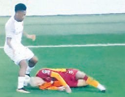 Lucas Torreira, Ümraniye maçında kayıp yere düştü ama mücadeleyi bırakmadı. Topu kafasıyla engelleyip Melo’nun hareketini yıllar sonra tekrarladı.