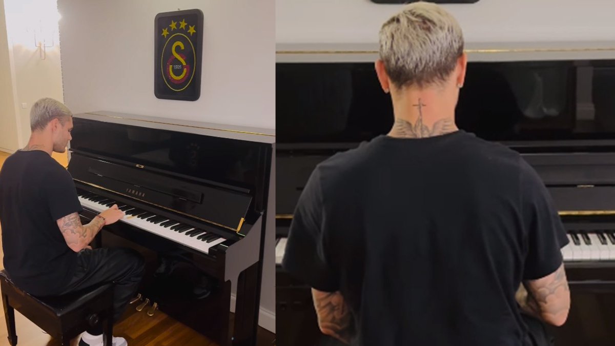 Galatasaray'ın golcü futbolcusu Mauro Icardi, piyano başında "Aşkın olayım" şarkısını çaldı.