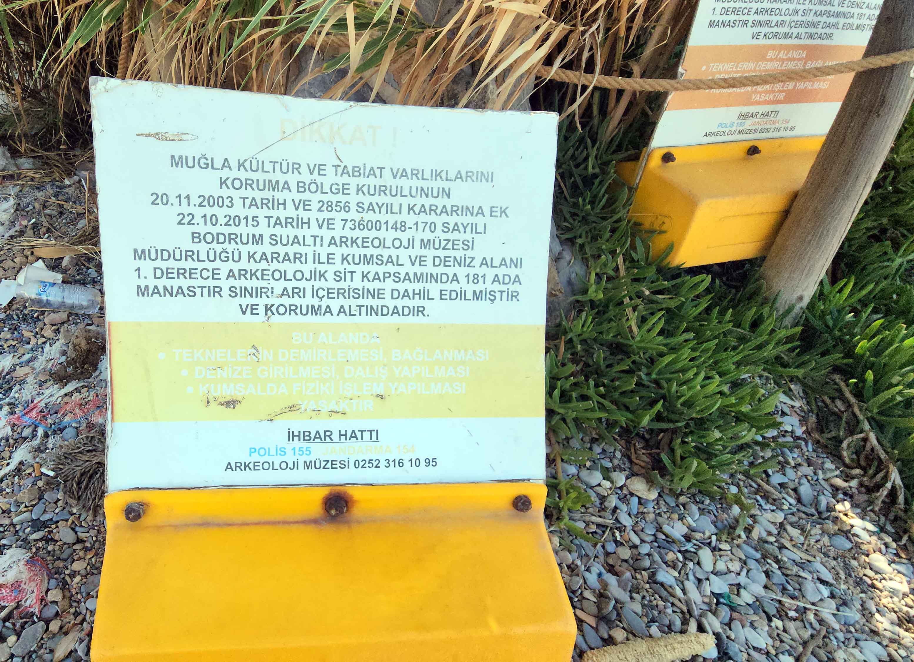Muğla’nın Bodrum ilçesine bağlı Mavi Bayraklı Torba Mahallesi Koyu’ndaki Manastır Mevkii’nde Muğla Kültür ve Tabiat Varlıklarını Koruma Bölge Kurulu ve Bodrum Sualtı Arkeoloji Müzesi Müdürlüğü tarafından 1. Derece Arkeolojik sit Alanı ilan edilen bölgede denizin içerisine atık su boru döşenmesi görenleri şaşkına çevirdi.