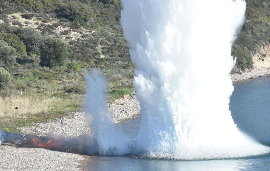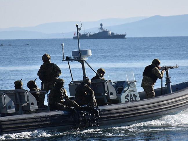 Mavi Vatan-2019 tatbikatından kareler Foto: DHABu gemide bulunan SAS ve SAT timleri de sahil gerisi keşif harekatı başlattı. Timler botla mayının bulunduğu bölgeye gelerek dalış gerçekleştirdi. Timler, mayına fünye bağladıktan sonra mayınlı bölgeden uzaklaştı. Ardından SAS ve SAT timlerinin mayına yerleştirdiği fünye patlatılarak mayın etkisiz hale getirildi.