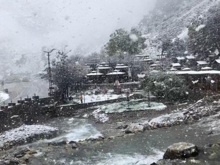 Kar yağışı ile birlikte ilçe merkezi ve dağlar beyaza büründü. Fotoğraf severler yeşil ile beyazın bir arada olduğu manzarayı fotoğraflayarak ölümsüzleştirirken, merada hayvanlarını otlatan çobanlar ise zor anlar yaşadı.