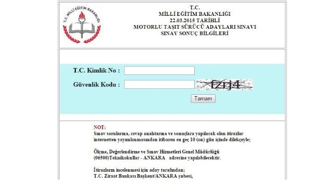 EHLİYET SINAVI SONUÇLARI SORGULAMA SAYFASI