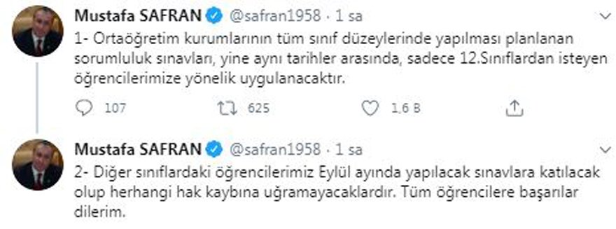 * Ortaöğretim kurumlarının tüm sınıf düzeylerinde yapılması planlanan sorumluluk sınavları, yine aynı tarihler arasında, sadece 12. sınıflardan isteyen öğrencilerimize yönelik uygulanacaktır.