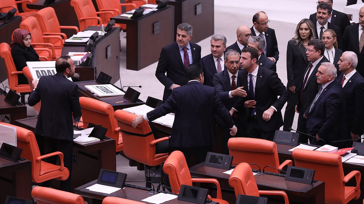Fotoğraf çektiren AKP Milletvekilleri Şenyaşar'a 'indir o dövizi' diyerek üzerine yürüdüler, araya giren vekiller kavgayı önledi.