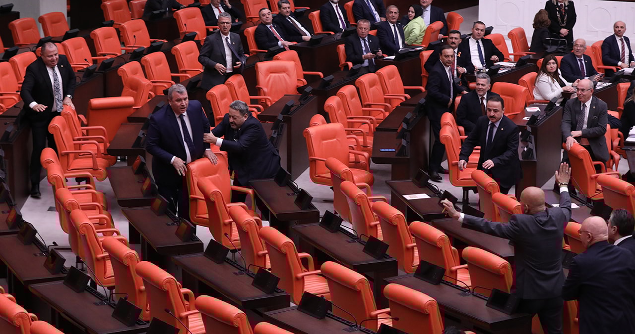 Kurul'da CHP önergesi görüşülürken MHP ve CHP Milletvekilleri arasında tartışma yaşandı. Oturdukları yerden karşılıklı tartışan vekiller birbirinin üzerine yürüdü kavgayı araya giren vekiller önledi.