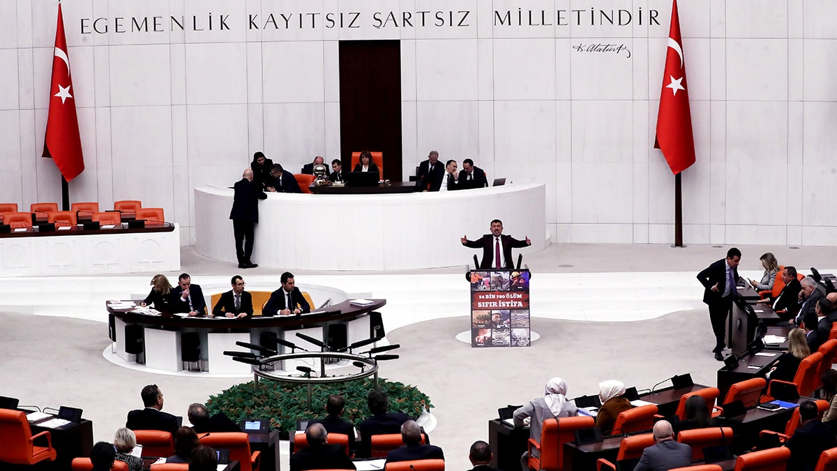 CHP Malatya Milletvekili Veli Ağbaba. Genel Kurulda kürsüye üzerinde '54 Bin 780 Ölüm Sıfır İstifa' yazan görselle çıktı. Ağbaba, yaptığı konuşmada şu ifadeleri kullandı;