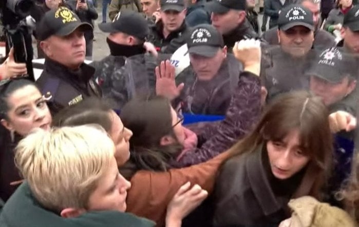 Meclis önünde basın açıklaması yapmak isteyen kadın gruba polis izin vermedi. Grubun ısrarı sonrası polis barikatı aşıldı ve basın açıklaması yapıldı.