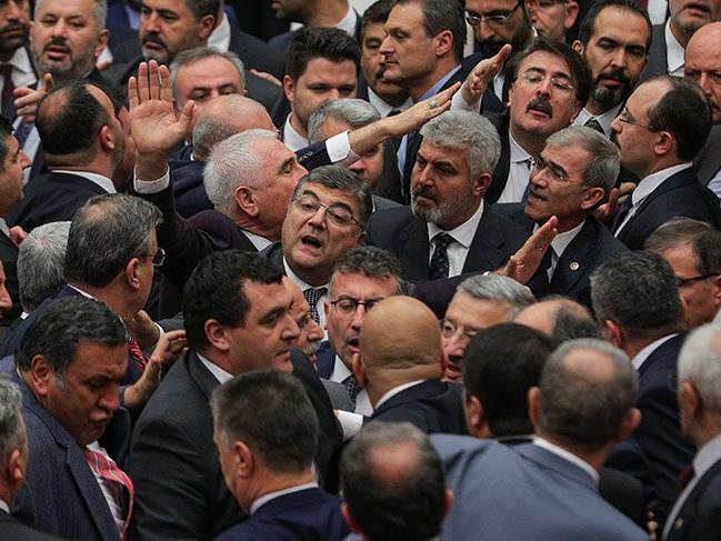 Fotoğraflar: Zekeriya AlbayrakOturuma yöneten Meclis Başkanvekili Levent Gök, arbedenin büyümesi üzerine oturuma ara verdi.