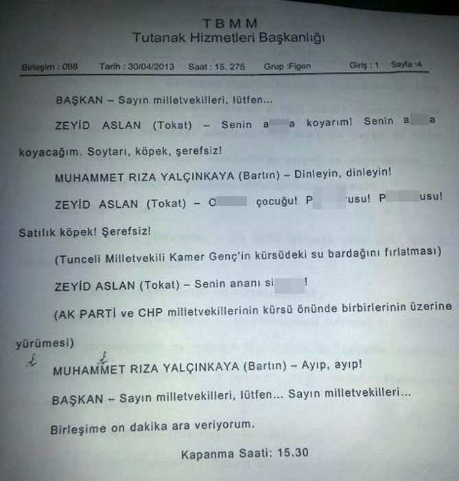 PİÇ KURUSU: AKP ve CHP’li milletvekilleri kavga sırasında karşılıklı “Şerefsiz, piç kurusu, pez…, A…K…, lan, si…g…” şeklinde küfür ettiler. Kavga başladığında TBMM Başkanvekili Meral Akşener, ‘arkadaşlar’ diye sesi kısılıncaya kadar bağırdı. Ancak kavga devam edince oturumu kapattı.