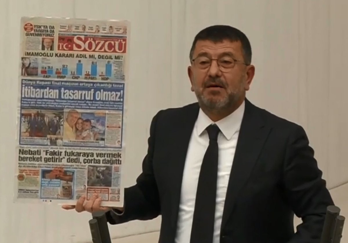 Ağbaba, Sözcü’nün dünkü manşetini gösterip "Recep Tayyip Erdoğan, Katar'ın hediye ettiği uçakla Katar'a gitti. Diğer tarafta Arjantin Devlet Başkanı. Arjantin Devlet Başkanı kim? Kupanın sahibinin takımının başkanı. 'Ülkemde ekonomik kriz var' diye gitmedi. Yanındaki beyefendi takımı yok, kimse yok Katar'a maç izlemeye gitti" diyerek iktidara tepki gösterdi."TERS KELEPÇEYİ DE ANAYASA MAHKEMESİ’NE TAKILAN KİLİDİ DE HEP BİRLİKTE KIRACAĞIZ"