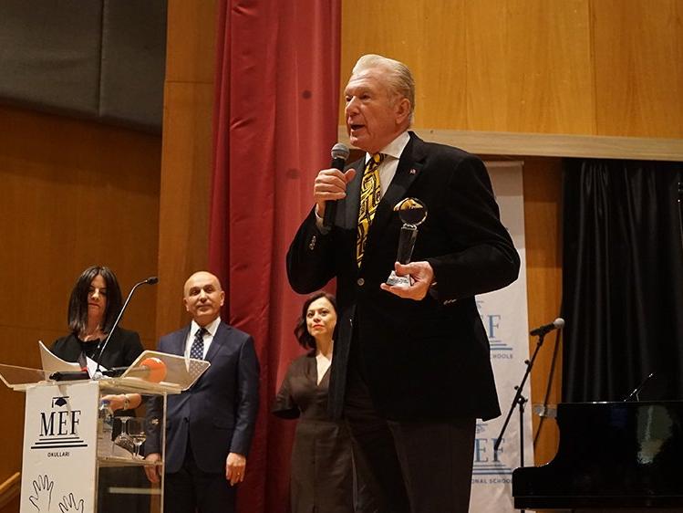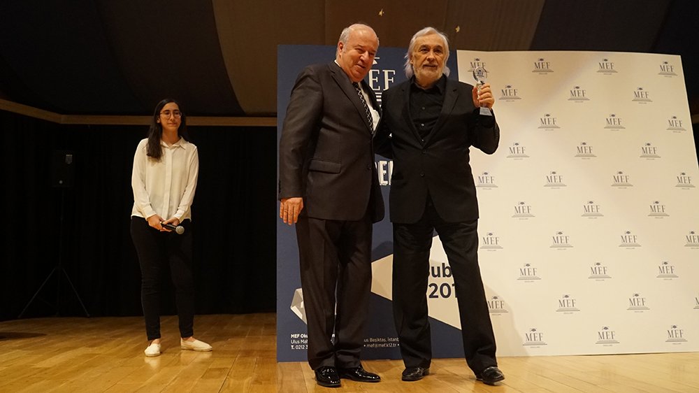 Müjdat Gezen'e ödülü MEF Okulları Genel Müdürü Prof.Dr.Erdoğan Bozdemir takdim etti.MÜJDAT GEZEN: KORKMAMA ÖZGÜRLÜĞÜNÜ ÇOK GÜZEL KULLANMIŞSINIZ