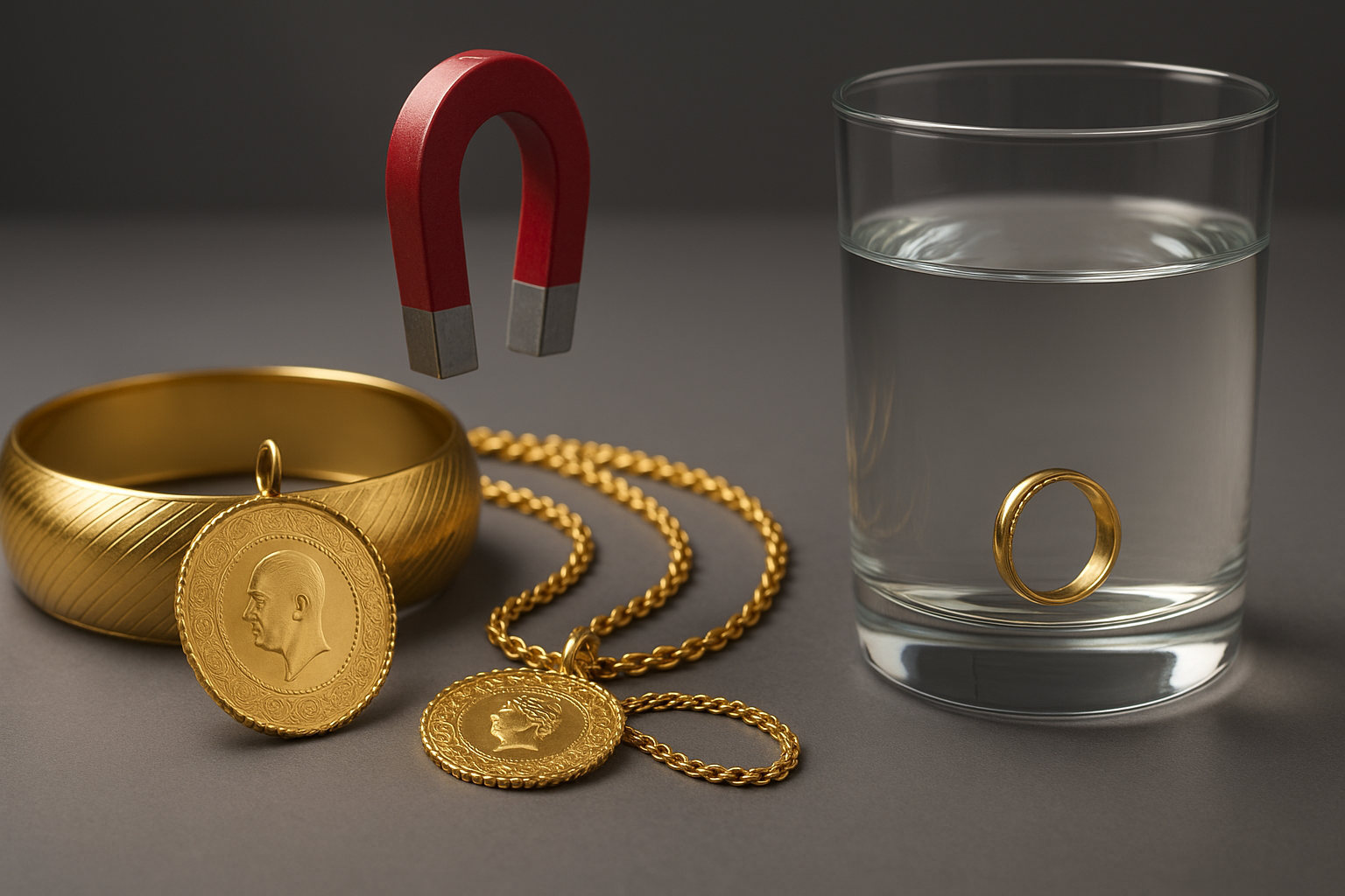 Gerçek altının en bilinen özelliklerinden biri manyetik olmamasıdır. Bu nedenle mıknatıs testi, sahte altını ayırt etmede en hızlı ve kolay yöntemlerden biri olarak öne çıkıyor.
