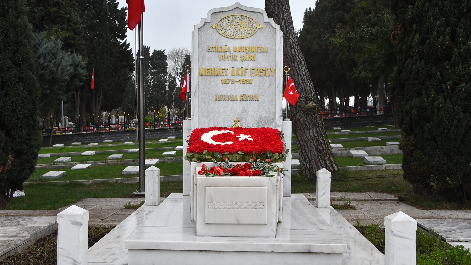 İstiklal Marşı’nın kabulünün 103'üncü yıl dönümünde şair Mehmet Akif Ersoy'un Edirnekapı Mezarlığı'nda bulunan kabri başında program düzenlendi.