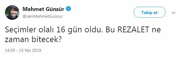 Ünlü oyuncu Mehmet Günsür de sürecin bu kadar uzamasına yönelik tepkili... Günsür, Twitter hesabından yaşanılanları "Rezalet" olarak tanımladı: