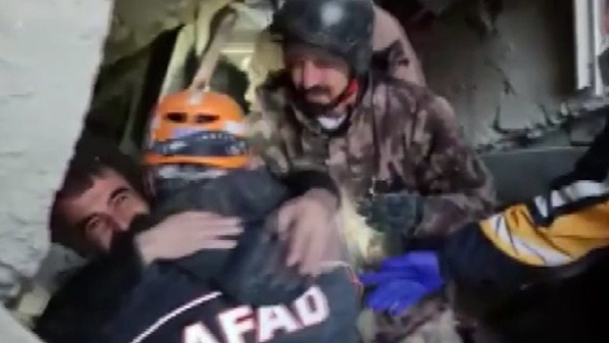 Hatay'ın Kırıkhan ilçesinde, 5'inci Kolordu İstihkam Alayı'nın Doğal Afetler Arama Kurtarma Timi, anne ile 3 çocuğunu enkazdan sağ çıkardı.