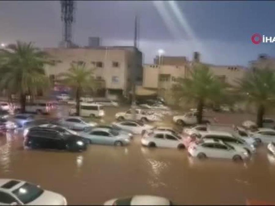 Suudi Arabistan'ın Medine kentinde etkili olan sağanak yağışlar nedeniyle yollar sular altında kaldı. Mekke'de ise yüzlerce kişi yağmur altında tavaf etti.