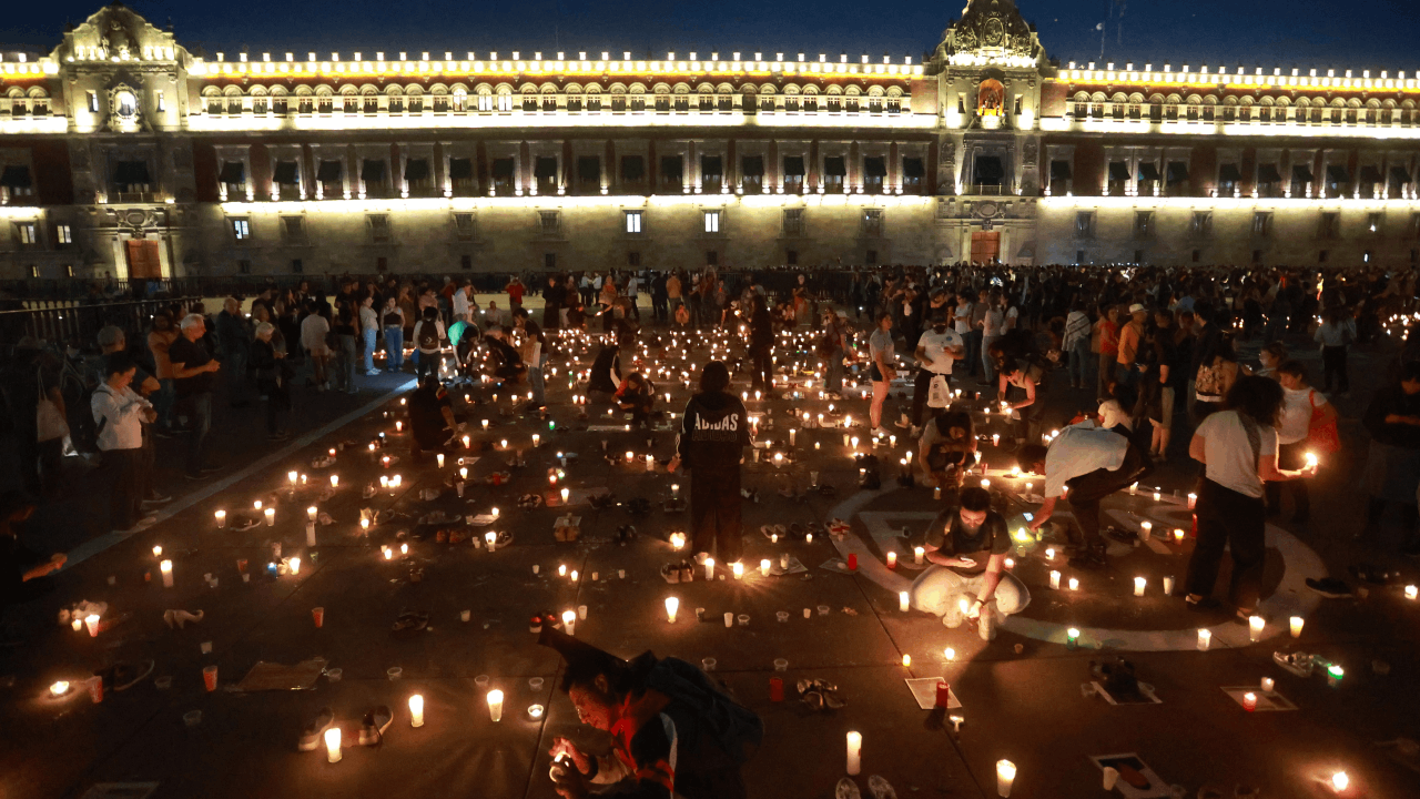 Meksika'nın başkenti Mexico City'deki Zocalo Meydanı'nda toplanan vatandaşlar, Jalisco eyaletinde bulunan ve toplu infaz yeri olabileceği değerlendirilen alan için düzenlenen nöbet ve 'ulusal yas' etkinliğine katıldı.