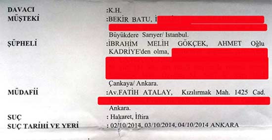 Kendi üzerine tapulu daireleri inkar eden Gökçek’in “Haksız kazanç- iftira- hakaret” suçlarından cezalandırılmasını isteyen Gazeteci Batu, Gökçek’in kendisi hakkında @06melihgokcek hesabından attığı twitleri ve söz konusu dairelerin tapu kayıtlarını da savcılığa delil olarak sundu.