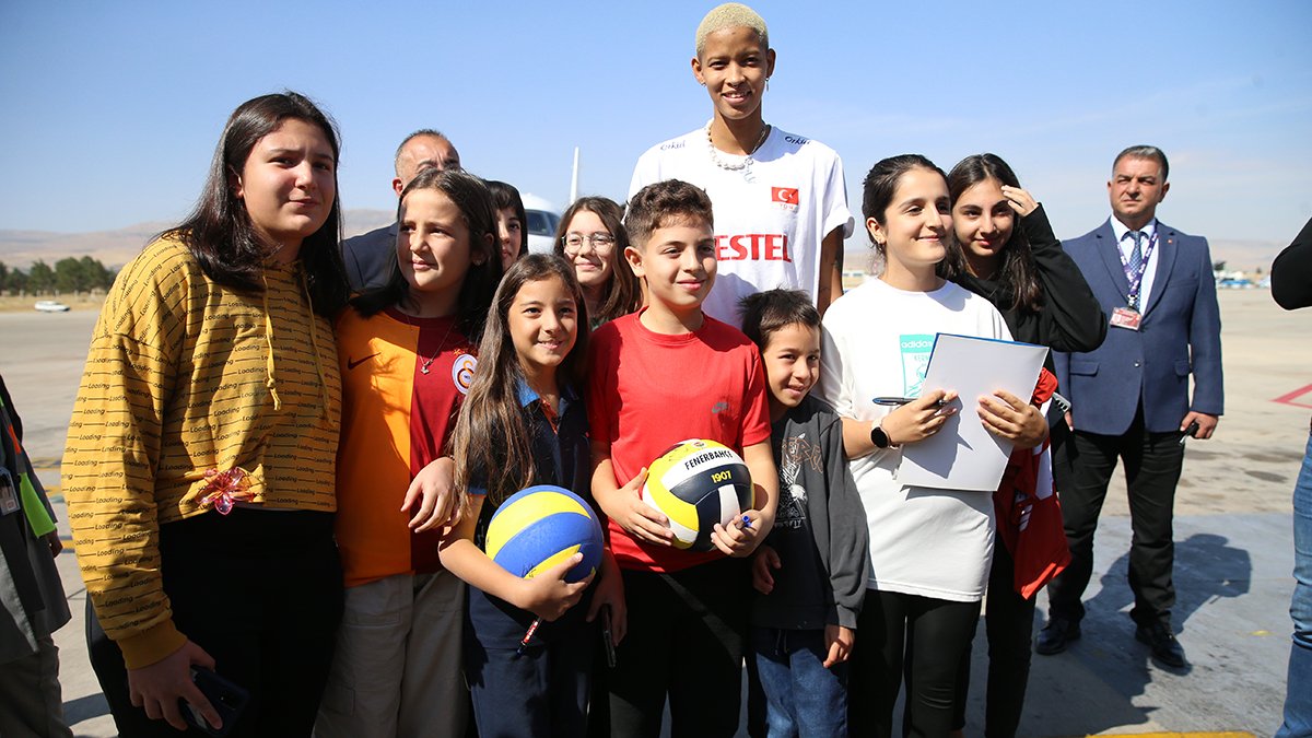 Malatya Büyükşehir Belediyesi Tekerlekli Sandalye Basketbol Takımı'nın kaptanı Abdullah Akgün, genç sporcuya çiçekle selam verdi. Vargas da karşılık olarak çocuklara top verdi ve formalarını imzaladı.
