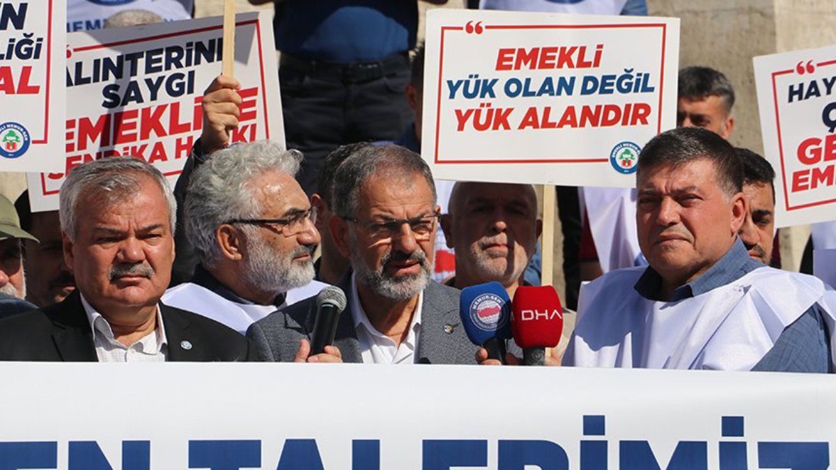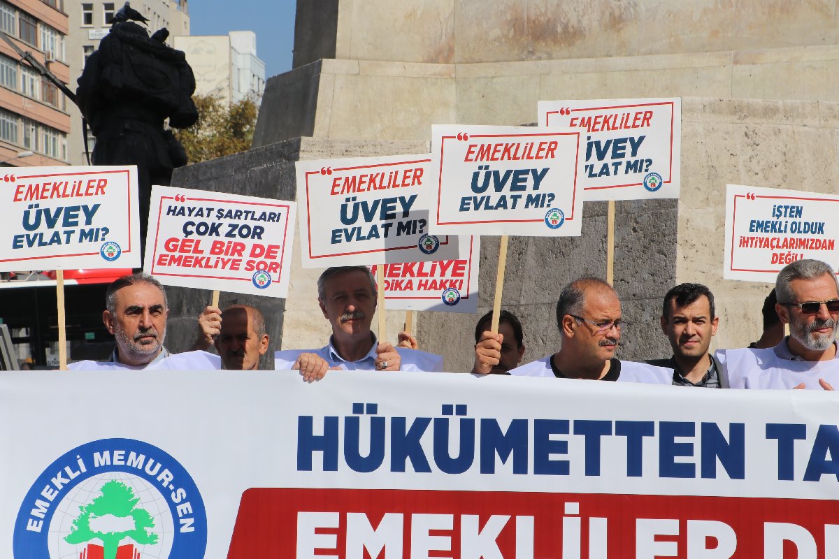 'Hükümetten talebimiz büyük değil, emekliler devlete yük değil' yazılı pankart taşıyan grup, 'Yılların emeği yok sayılmasın', 'Yasa, statü istiyoruz' diye slogan attı.