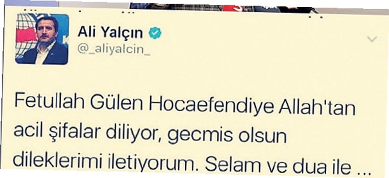 Ali Yalçın’a tepki gösteren bir sosyal medya kullanıcısı da geçmişte Fetullah Gülen için ‘geçmiş olsun’ mesajını paylaştı.