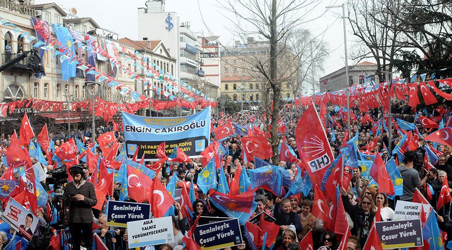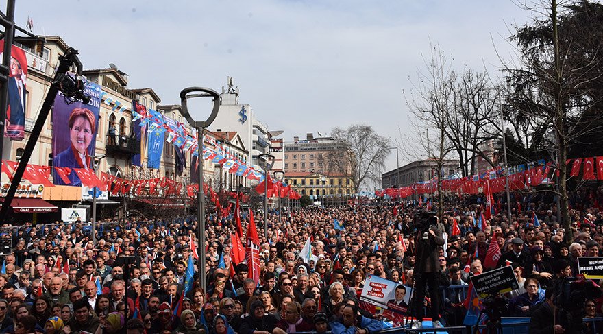 31 Mart´ta yerel seçimlerin yapılacağını hatırlatan Akşener, "Sanırsınız savaşa gidiyoruz. Tutturdular bir beka. Elli kere söyledim. Elbette Türkiye´nin düşmanları çok. O düşmanları sevindirmemenin yolu birliğimizi ve beraberliğimizi muhafaza etmektir. Bir belediye kazanabilmek için insanları birbirine düşürmemektir. Sayın Erdoğan´a sesleniyorum. Merak etme. Türkiye zora düştüğünde, 'Her Türk asker doğar' gereğini yaparız. Trabzonlu, Karadenizli, yapar. Bu seçimler arkadaşların koltuklarının bekasına döndü. Diyorum ki 'Rahat olun.' Belediye başkanı seçilecek. Bu belediye başkanlarının tamamına ister Cumhur İttifakı ister Millet İttifakı´ndan olsun, başarılar diliyorum. Hayırlı olanı, doğru hizmet yapacak olanı kazansın. Biz CHP ile ittifak kurduk. Adımız 'Terörist, zillet, illet' oldu. Zilletin manası ne? 'Aşağılık insan' demek. İlletin manası ne? 'Hastalıklı insan' demek. Milletine, 11 milyon alan CHP seçmenine, 5 milyon oy alan İyi Parti seçmenine, 1 milyon oy alan Demokrat Parti ve Saadet Partisi seçmenine 'zillet, illet' dediğin zaman hakaret ediyorsun muhterem. İstediğin kadar inkar et. Biz yuhalamayacağız, 31 Mart'ta şak diye o kulağı çekeceğiz" dedi.