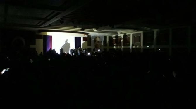 Meral Akşener, elektriklerin kesildiği ve katılanların cep telefonları ışığıyla aydınlatmaya çalıştığı salona gelerek, toplantının iptal edilmeyeceğini söyledi ve konuşmasını yapmaya başladı.