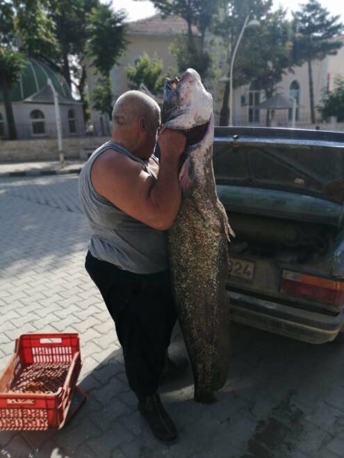 İpsala'nın Yenikarpuzlu beldesinde yaşayan balıkçı Veysel Irmak'ın Meriç Nehri'ne attığı ağına yayın balığı takıldı. Irmak, nasipli bir av geçirdiği için mutlu olduğunu söyledi. Genelde davul ağ yöntemiyle balık tuttuğunu ifade eden Irmak, "Şanslı günümüzdeydik. 30 kilogram olan yayın balığının boyu 2 metre. Uzun zamandır böyle balık düşmemişti" dedi. Irmak, balığı Edirne dışındaki bir kentteki müşterisine sattığını söyledi. (AA)