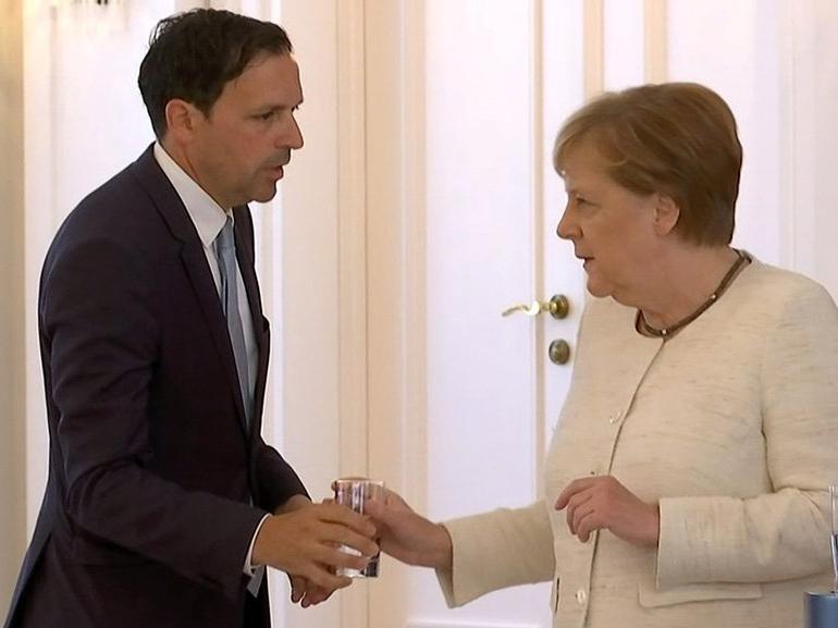 Merkel Perşembe günü Berlin'deki törende iki dakika boyunca titrerken görülmüştü. Gelecek ay 65 yaşına basacak olan Angela Merkel, titremesi durana kadar kollarını kavuşturup bekledi. Bu sırada da kendisine uzatılan bir bardak suyu reddetti. Merkel daha önce de Ukrayna Devlet Başkanı Volodimir Zelenski'nin yanında titrerken görülmüş, sebebinin sıcak havalar nedeniyle 'su kaybı' (dehidrasyon) olduğunu söylemişti.