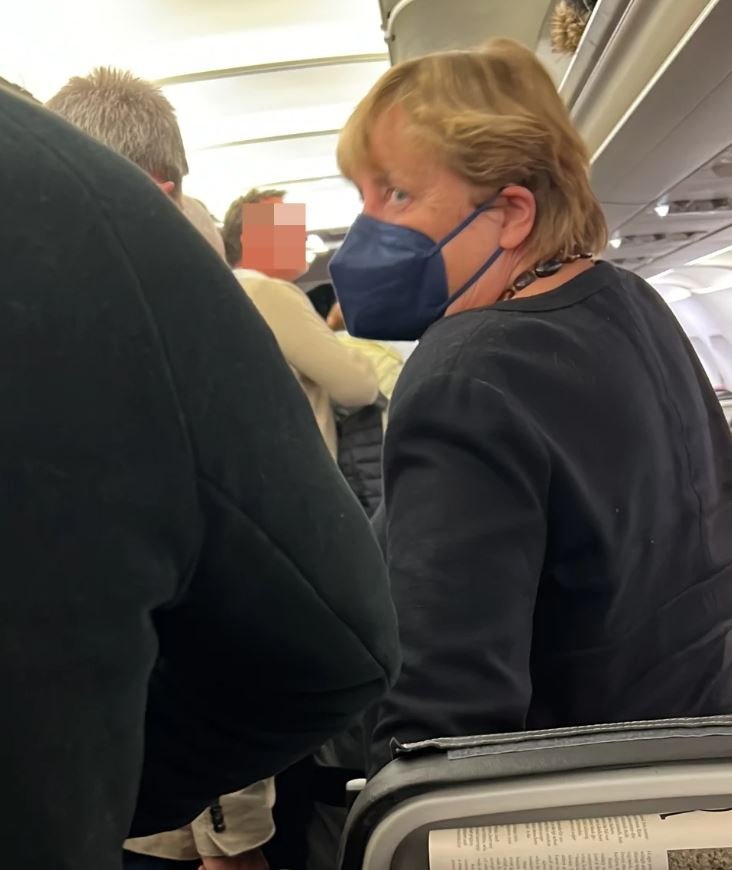 Merkel'in uçağa ilk binen yolcu olduğu ve korumalar tarafından eşlik edildiği belirtildi. Merkel'in cam kenarına oturduğu, eşinin ise koridor kenarında oturduğu kaydedildi. Merkel'in bir korumasının ise birkaç sıra arkaya oturduğu duyuruldu. Uçaktaki görgü tanıkları eski başbakanın tabletiyle kitap okuduğunu, bulmaca çözdüğünü ve sandviç yediğini aktardı.