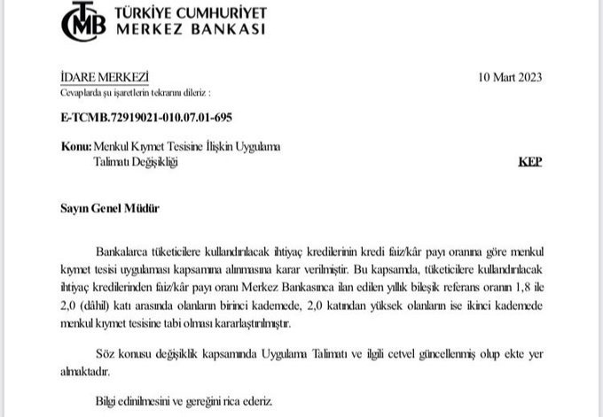 TCMB'den dün bankalara ilettiği yazı ile getirdiği değişiklikler şöyle:
