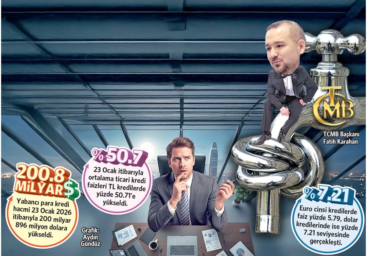 Uzmanlara göre mevcut sıkılaşma süreci bu şekilde devam ederse, finansman baskısı reel sektörde iflas risklerini ve ekonomik daralmayı hızlandırabilecek bir tabloya dönüşebilir. Nitekim, TL ticari krediler ile döviz kredileri arasında ciddi maliyet farkı var. Merkez Bankası haftalık verilerine göre 23 Ocak itibarıyla ortalama ticari kredi faizleri TL kredilerde yüzde 45.95’den yüzde 50.71’e yükselirken, euro cinsi kredilerde ortalama faiz sınırlı bir değişimle yüzde 5.79, dolar kredilerinde ise yüzde 7.21 seviyesinde gerçekleşti.