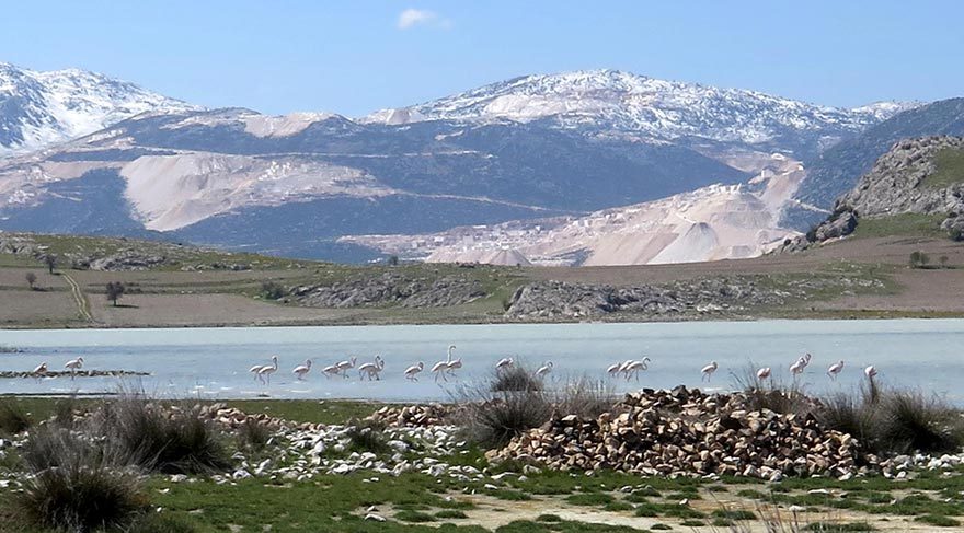 Kuşların artık suya girmekten imtina ettiğini, göl kenarında karada bir şeyler aradığını belirten Nusret Yakışıklı, gölün renginin mermer tozları nedeniyle kirli beyaza döndüğünü, flamingolar başta olmak üzere birçok kuş türünün gölü terk ettiğini söyledi. Yakışıklı, hem göl etrafı hem göl suyunda oluşan kirlilik nedeniyle ilk kez bu yıl flamingoların bu göle gelmediğini de dile getirdi.