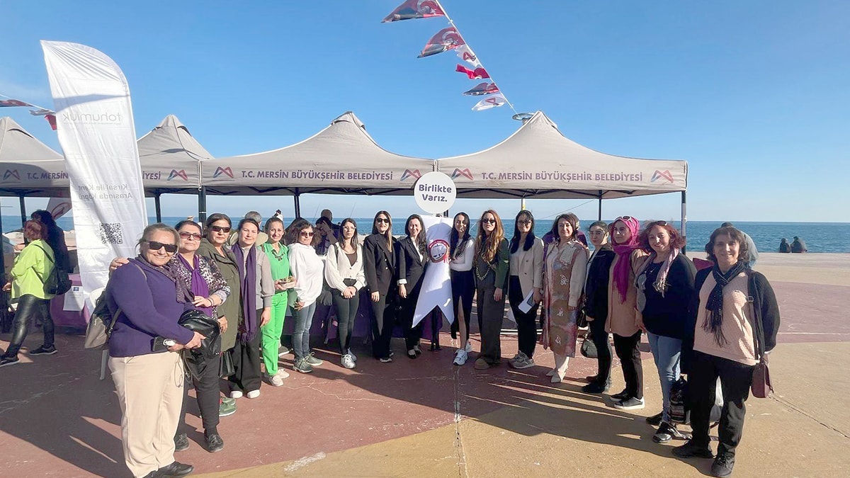 Mersin Barosu Yönetim Kurulu Üyesi Av. Çiğdem Ataş Erçolak, Kadın Hakları Merkezi Başkanı Av. Gülce Dida Çavdar, Merkez Yürütme Kurulu Üyeleri Av. Sena Yılmaz, Av. Selen Sedir, Av. Özüm Öz, Av. Buse Taşer, Av. Ezgi Korkut, Av. Miray Çerkez ve merkez üyesi avukatlar, vatandaşlara kadın hakları, toplumsal cinsiyet eşitsizliği, şiddet ile karşılaşan kadınların ne yapması gerektiği, kimlere ulaşması gerektiği ve Mersin Barosu Kadın Hakları Merkezi’nin kadınlara vermiş olduğu hukuki destek hakkında bilgilerin yer aldığı broşür dağıttı.