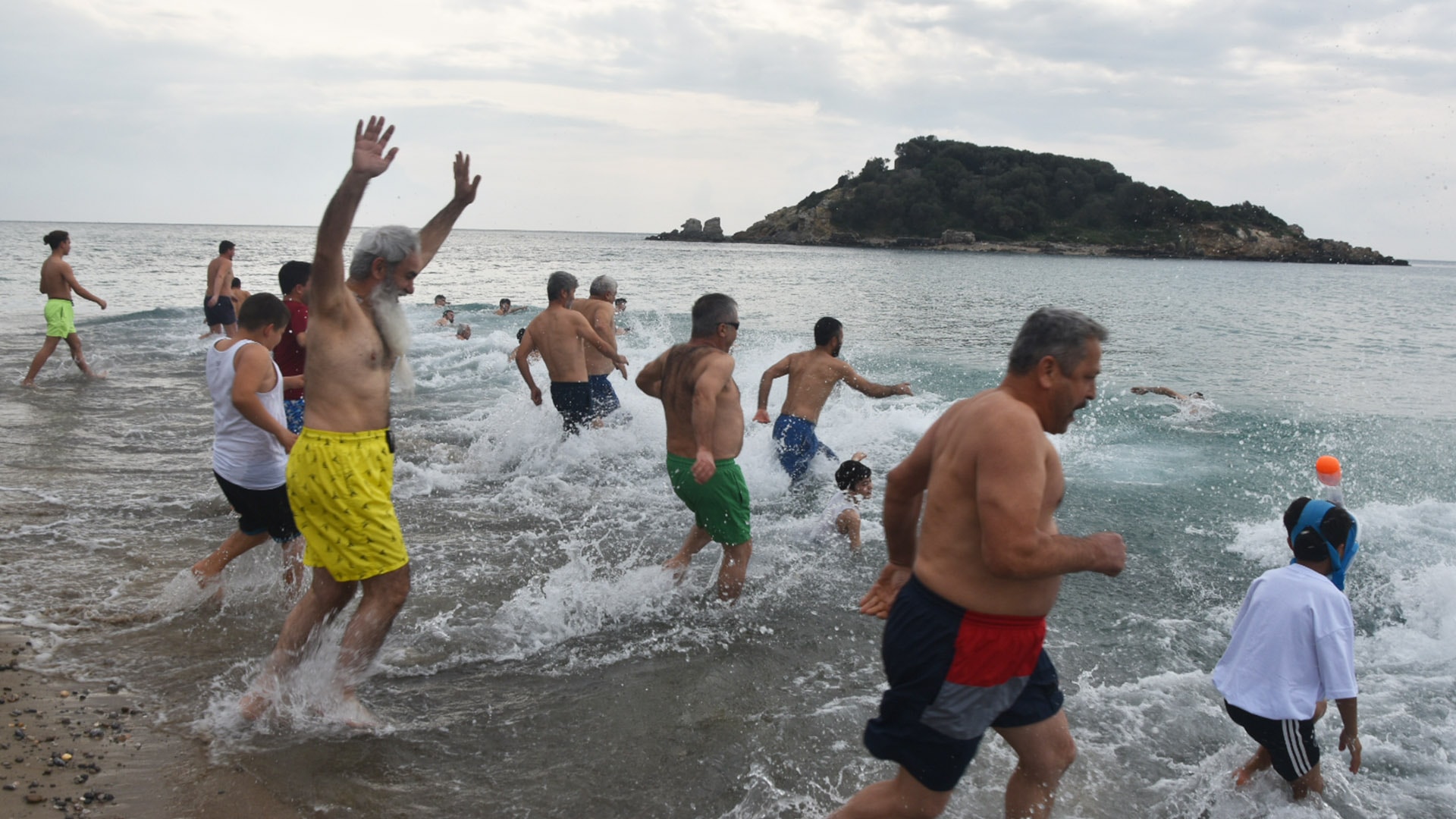 Mersin'in Bozyazı ilçesinde her yılın ilk günü denize giren çevreciler, 2024'ün ilk günü de geleneği devam ettirdi.