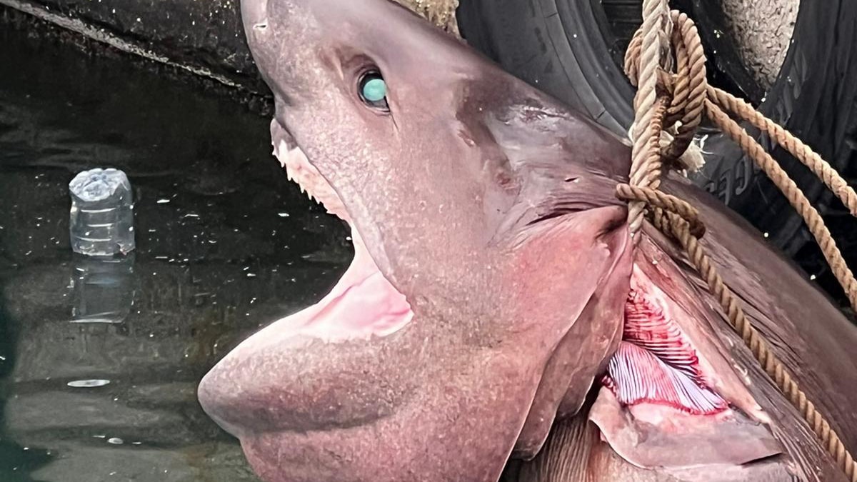 İhbar üzerine bölgeye yönlendirilen ekipler, halk arasında "boz camgöz" olarak da bilinen altı solungaçlı köpek balığının öldüğünü belirledi.