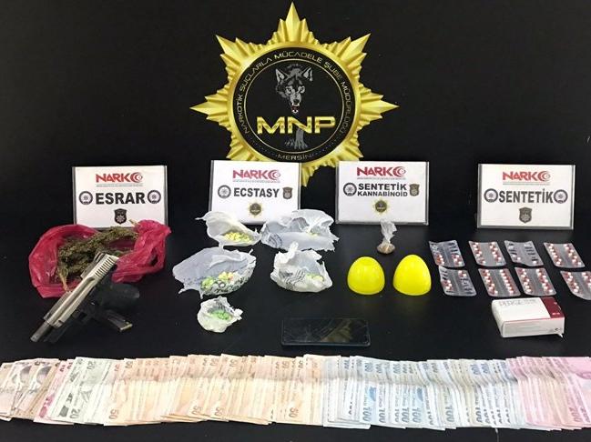Torbacılara yönelik düzenlenen operasyonlarda zanlıların ev ve iş yeri aramalarında, 260 adet ecstasy, 106 gram sentetik kannobinoid (bonzai), 50 gram esrar, 1 adet ruhsatsız tabanca, şarjörü mermiler ele geçirildi.