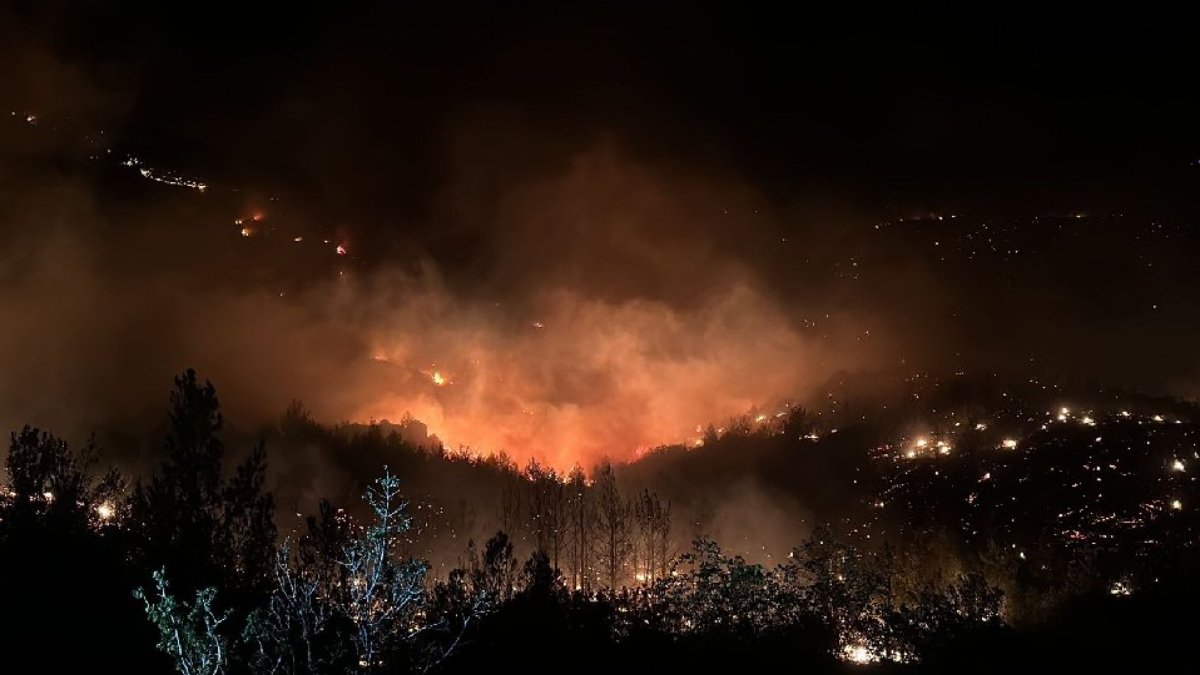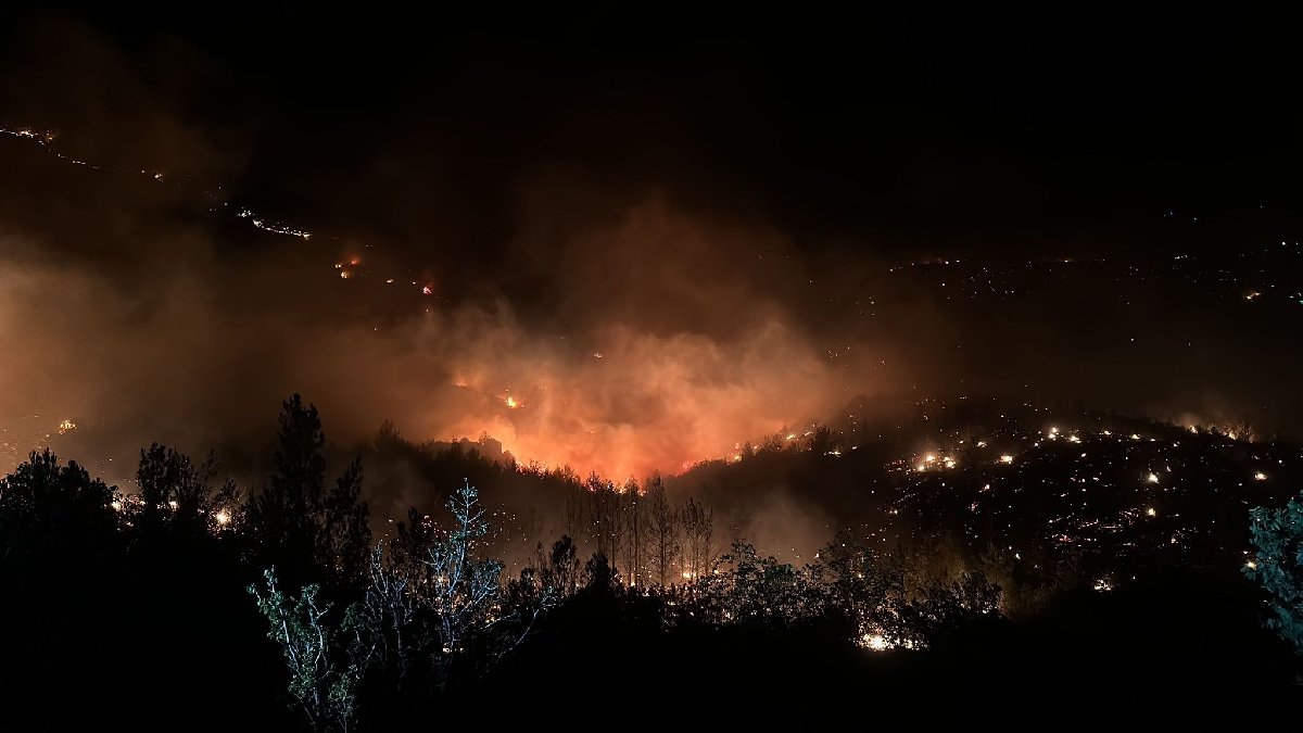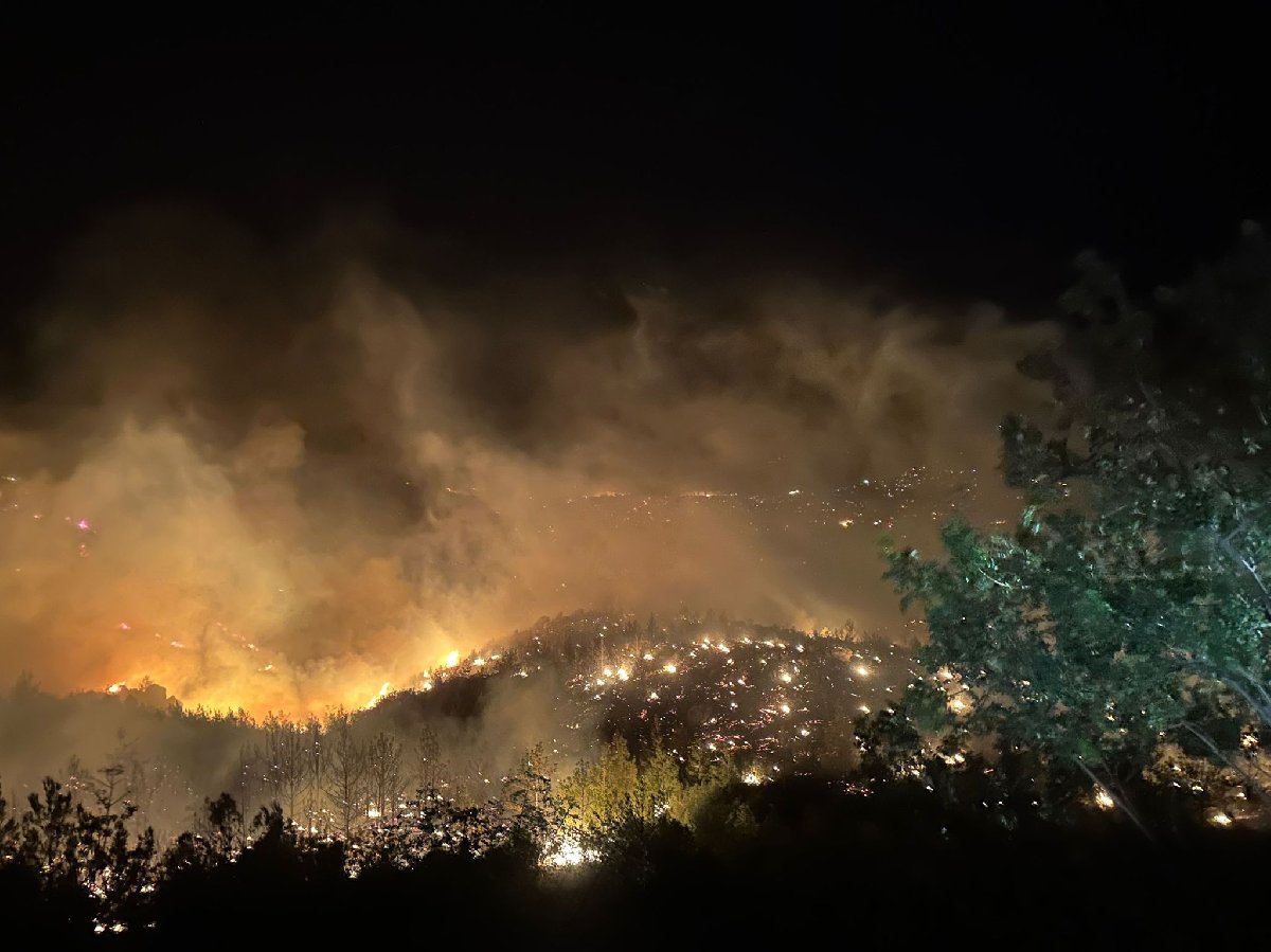 Mersin'in Gülnar ilçesinde Kavakoluğu Mahallesi'nde çıkan orman yangınına müdahale, havanın kararması nedeniyle karadan devam ediyor.