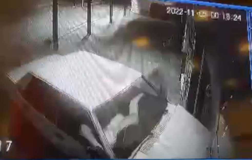 Öte yandan kaza anının güvenlik kamerasına yansıyan görüntüleri ortaya çıktı. Görüntülerde, seyir halindeyken karşı şeride geçen otomobilin süratle iş yerine daldığı anlar yer aldı. (DHA)