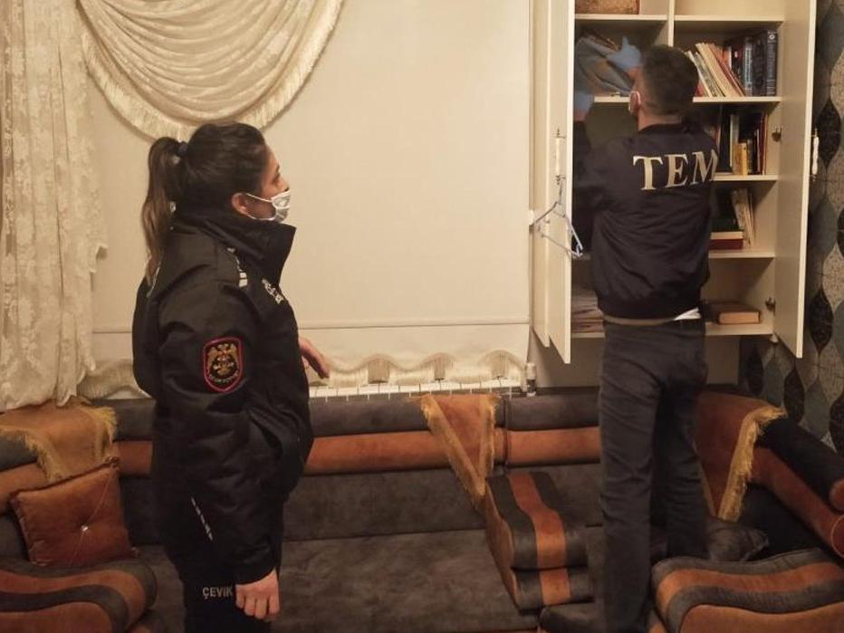 Eş zamanlı operasyonlarda H.Ş., S.B.C., C.O., Ş.G., A.S., A.Y., A.A., U.S., S.D., İ.A ve M.Ş.K. gözaltına alınırken, şüphelilerle birlikte 1 adet ruhsatsız tabanca, 13 adet mermi, 2 şarjör, 500 euro, 200 dolar ve 2 bin 950 TL para ile 54 adet fişek, farklı şahıslar adına düzenlenmiş senetler ve 1 adet ruhsatsız av tüfeği ele geçirildi. Hakkında yakalama kararı bulunan bir şahsın ise arandığı bildirildi. (İHA)