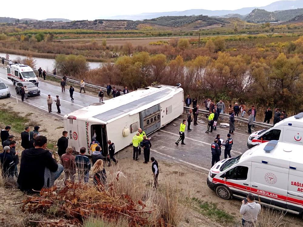 Otobüsün yan yattığı kazada 8 yolcu yaralandı. İhbar üzerine bölgeye polis, jandarma, itfaiye ve 112 Acil Servis ekipleri sevk edildi.