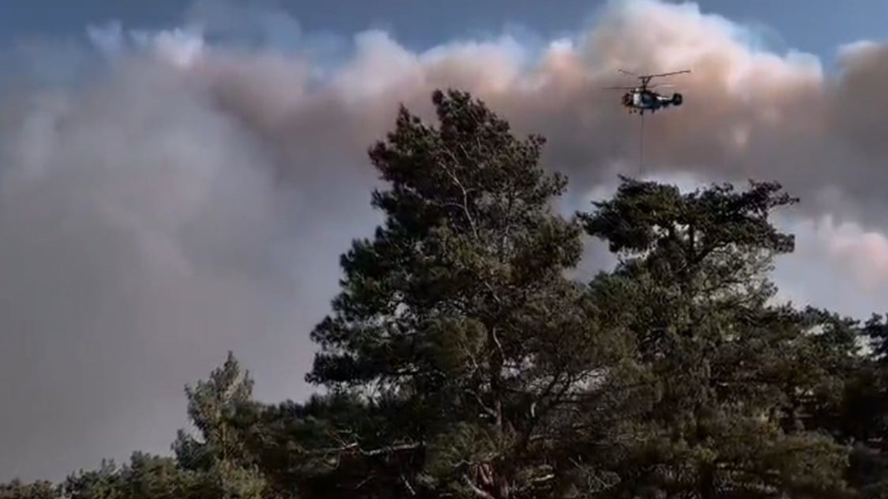 Takviye ekiplerin de yönlendirildiği yangına havadan beş helikopter müdahale ediyor.