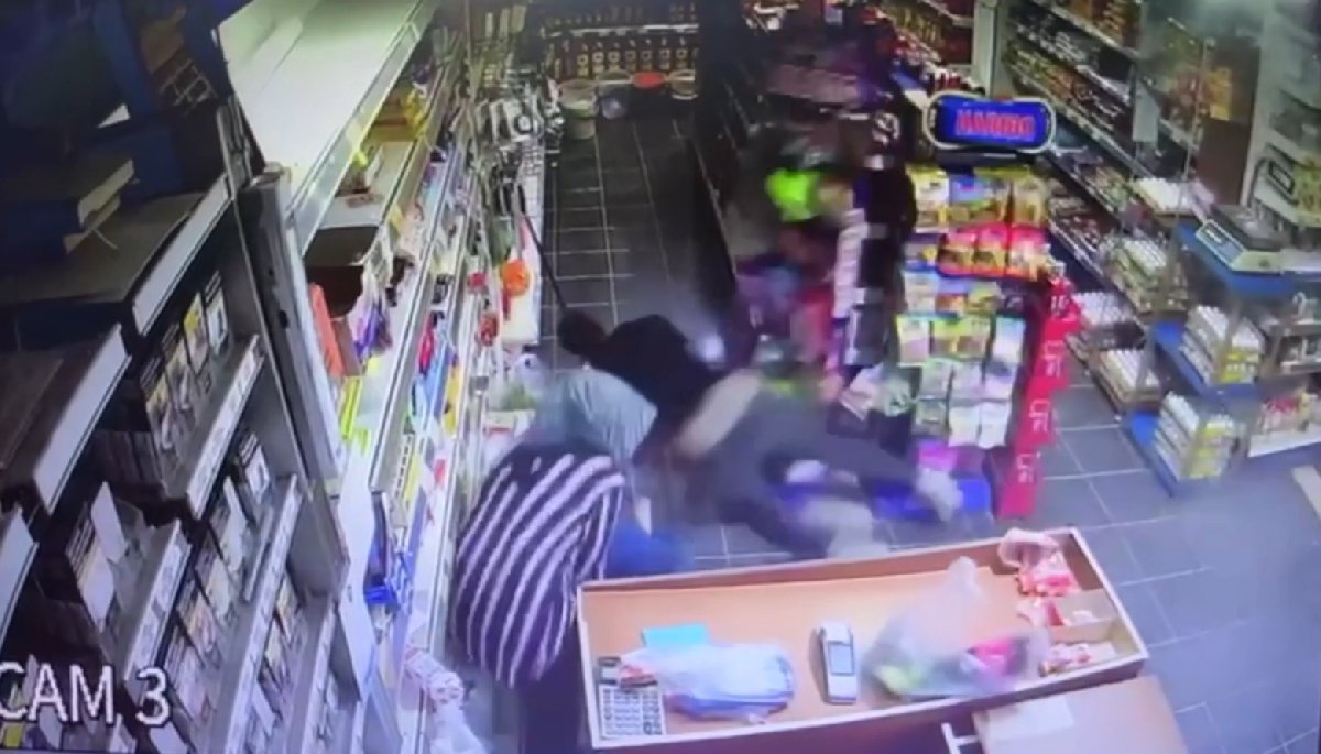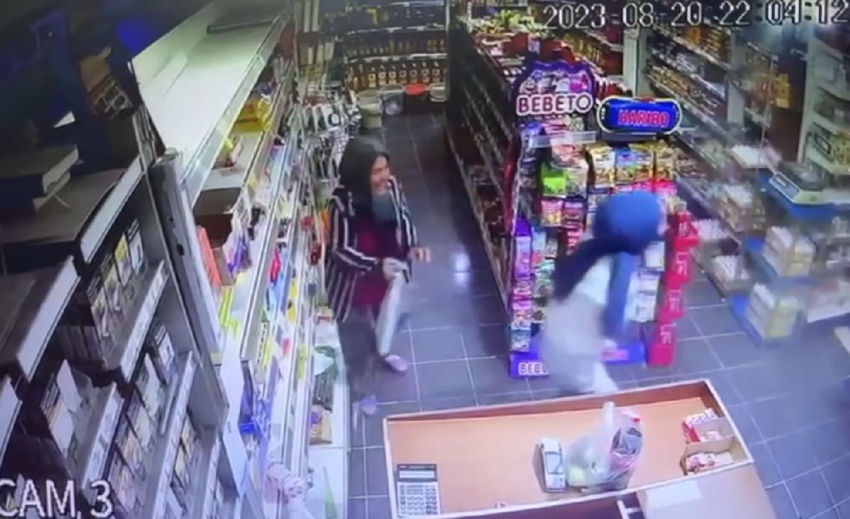 Dışarıdaki gürültüleri duyan kasiyer Merve Acar ne olduğunu anlamak için market kapısına yöneldi. O sırada kaçan Hasan Söylemez market içine girdi.