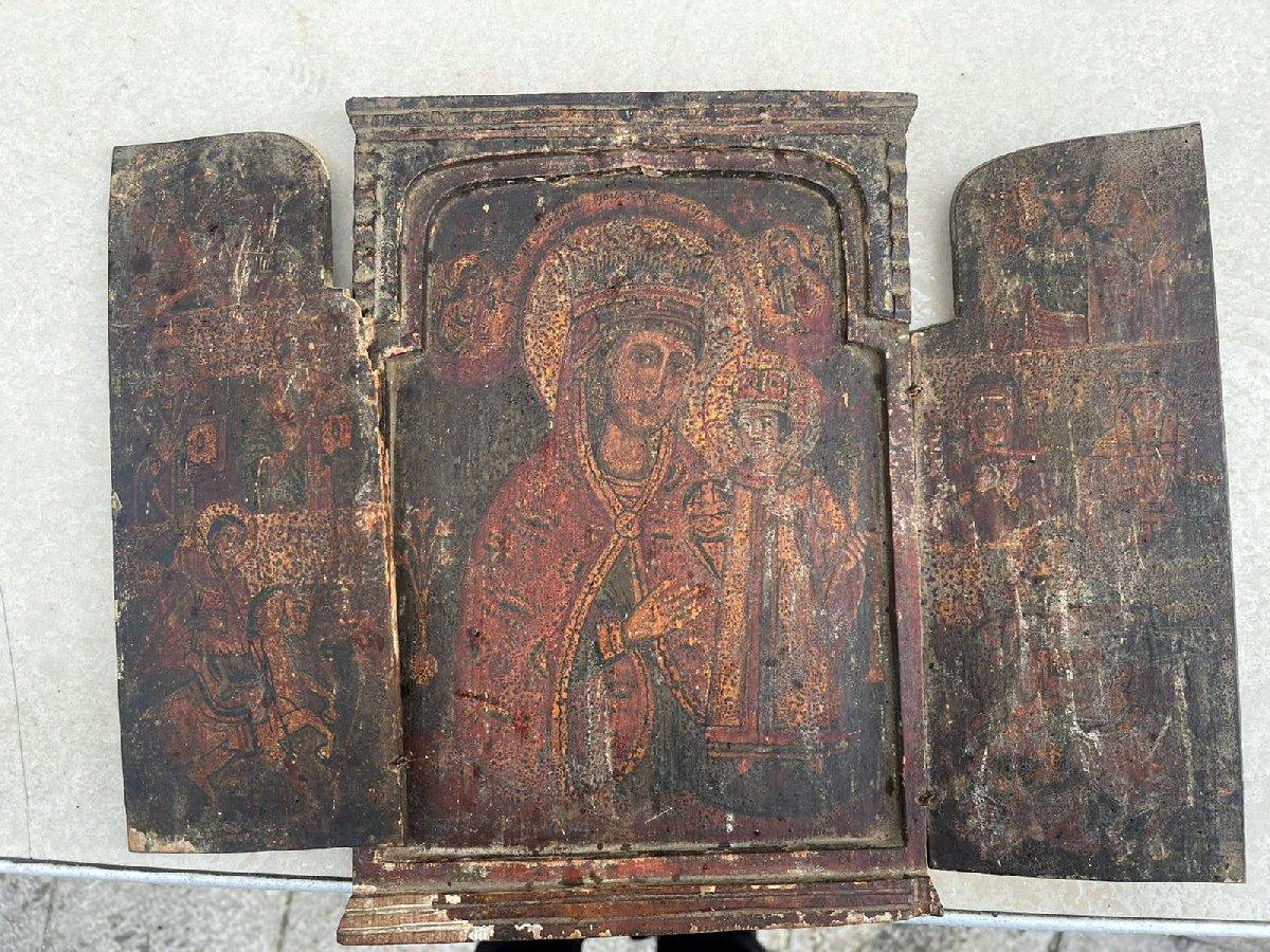 Şişli’de Önleyici Hizmetler Şube Müdürlüğü ekiplerince yapılan denetimde, şüpheli görülen bir araç durduruldu. Odessa Bulvarı üzerinde durdurulan araçtaki aramada arka koltukta, havluya sarılı Meryem Ana, Hz. İsa ve Hristiyanlıkça kutsal sayılan figürlerin yer aldığı bir resim bulundu. İki kapaklı ahşap üzerine yapılmış eserle ilgili soruşturma başlatıldı.