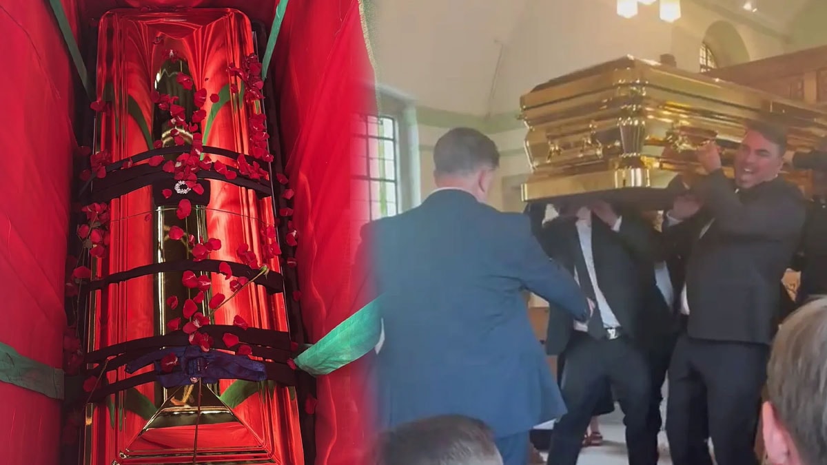 İngiltere'de 'Kral' lakabıyla bilinen 69 yaşındaki Frank Thompson için düzenlenen cenaze töreni, görenleri şaşkına çevirdi. Temmuz ayında hayatını kaybeden Thompson, ailesinin aldığı milyon dolarlık altın tabutla defnedildi.
