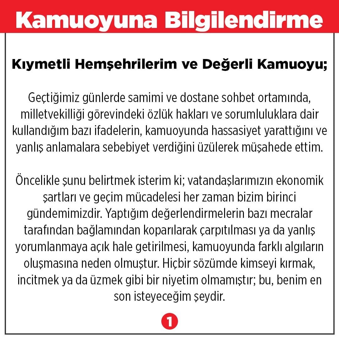 Açıklamasında, dile getirdiği ifadelerin "kamuoyunda hassasiyet oluşturduğunu ve yanlış anlaşılmalara" neden olduğunu gördüğünü belirten Özcan, değerlendirmelerinin "bazı mecralar" tarafından bağlamından koparılarak çarpıtıldığını savundu.