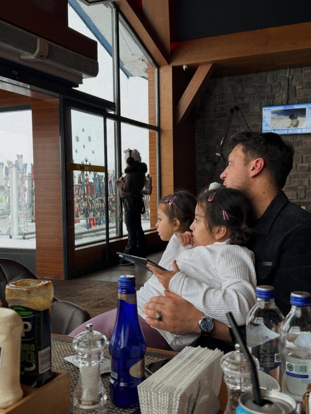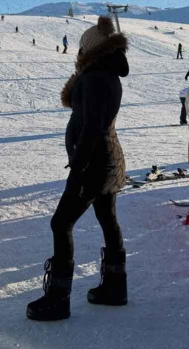 Gülşe'nin kayak yapan eşi ve çocuklarını izlemekle yetindi.ği görüldü.