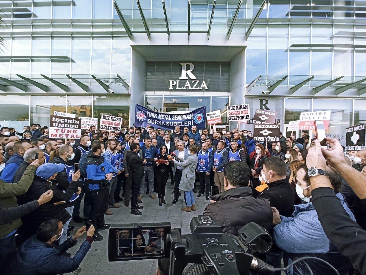 "MESS MESS şaşırma sabrımızı taşırma" sloganlarının atıldığı MESS'in Odunluk Mahallesi'ndeki temsilcilik binası önünde açıklama yapan Türk Metal Sendikası Bursa Şubesi Başkanı Selda Tekman, "Bugün burada, işimiz, emeğimiz ve ekmeğimiz için buluştuk. Bugün burada, İnsan onuruna yakışır biçimde çalışma ve insan onuruna yakışır biçimde yaşama talebimizi bir kez daha haykırmak için bir araya geldik. Ve bugün burada, bu haklı taleplerimize kulak tıkayan, emeğimizi görmezden gelen, bizi yok sayan MESS’e, sesimizi duyurmak için toplandık" dedi.