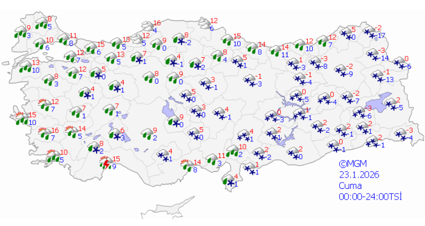 Müdürlük Sivas, Kayseri, Nevşehir ve Yozgat’ın güneydoğusunda Elazığ, Bingöl, Bitlis, Malatya, Tunceli, Diyarbakır, Batman, Mardin, Siirt, Şırnak, Hakkari’nin batısı ve Muş’un güney kesimlerinde kuvvetli kar yağış beklendiğini açıkladı.